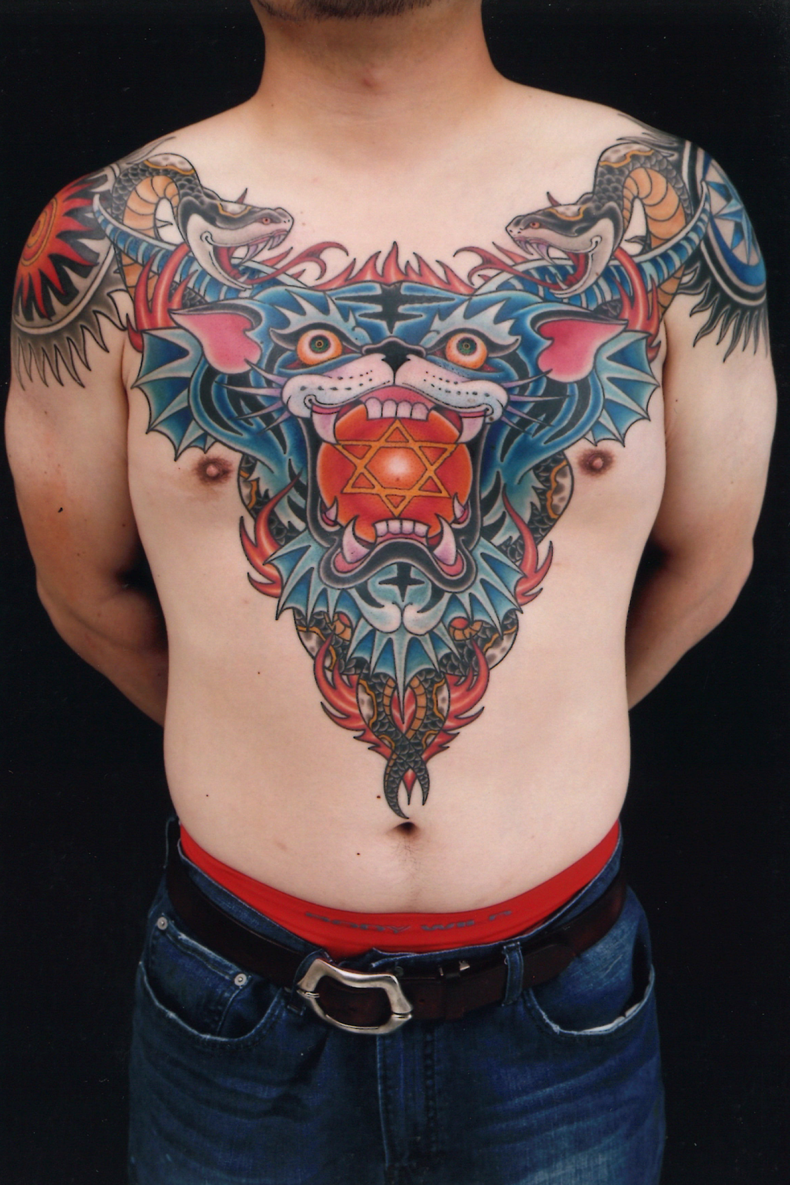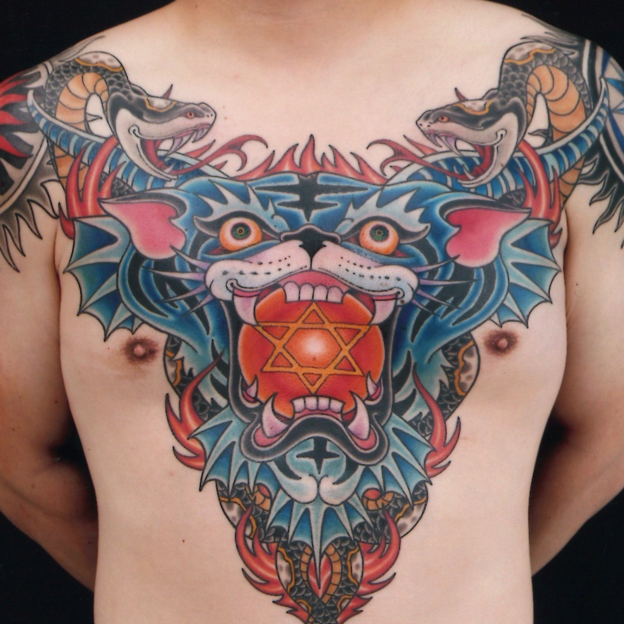 Devil Tiger Face with Twin Snakes